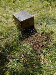 1. Bei der Methode über einen Kunstschwarm, auch Fegling genannt, werden die bei der Honigernte abgefegten Bienen mit Milchsäure am wegfliegen gehindert. Diese Bienen gibt man nun in einen Kasten (Ablegerkasten oder ähnliches). In diesem Kasten befindet sich eine begattete Königin im Ausfresskäfig auf Mittelwänden. Der Kasten wird bienendicht verschlossen kühl und dunkel für 2-3 Tage in „Kellerhaft“ gehalten. Es ist sehr wichtig dass dieser Kunstschwarm, der ja im Gegensatz zum Naturschwarm kein Futter bei sich hat, sofort flüssig gefüttert wird. Nach der „Kellerhaft“wird der Ableger außerhalb des Flugbereichs der entnommenen Bienen aufgestellt. Bei dieser Methode schlagen wir mehrere Fliegen mit einer Klappe. Die Vorteile sind: Die Bienen wurden durch das Besprühen mit Milchsäure varroafrei gemacht. Weil Mittelwände verwendet wurden erhalten wir neuen Wabenbau. Nachteil: Es dauert ca. 21 Tage bis die erste Brut schlüpft. Die Erfolgsquote liegt bei fast 100%.